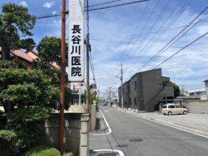 ⑦右側に会場が見えてきます。空いている駐車場にお車をお停めいただき、インターホンでお呼び出しください。
